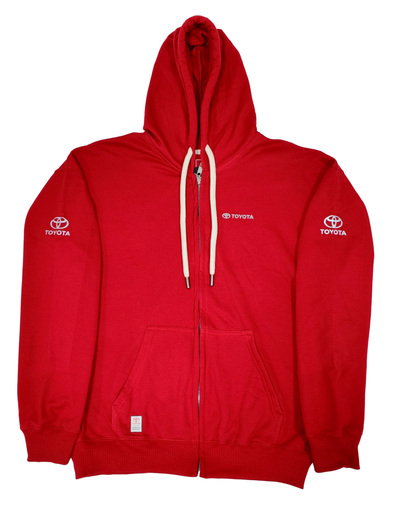 Luce con orgullo tu pasión por la marca con este hermoso Hoodie Abierto Toyota Rojo con Capota
