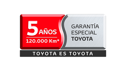 La garantía TOYOTA aplica únicamente para vehículos nuevos importados por Automotores Toyota Colombia S.A.S. (“ATC”), comercializados y facturados por los concesionarios de la red de ATC. La garantía tiene una cobertura de 5 años contados a partir de la fecha de entrega del vehículo al cliente o 120.000 km., lo primero que ocurra. Los primeros 3 años y/o los 100.000 km. iniciales corresponden a la garantía de fábrica, los siguientes 2 años y/o los 20.000 km. adicionales, corresponden a la garantía suplementaria ofrecida por ATC. *Aplican términos y condiciones.